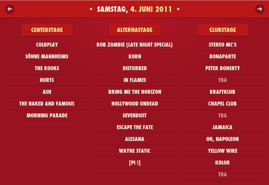 Vor wenigen Minuten hat MLK den offiziellen Spielplan für Rock am Ring 2011 veröffentlicht.